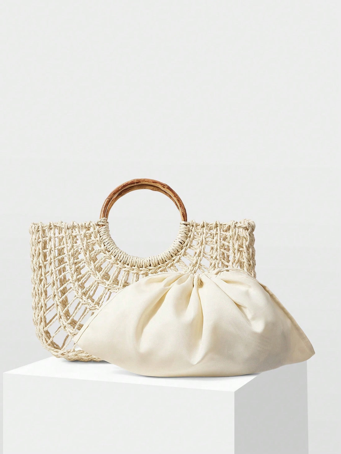 New Large Capacity Tote Bag, Woven Straw Dual Handle Design Women's Bag, Beach Bag For Commuting, Daily Shopping, Travel, Beach, Elegant, Lightweight, Casual, Portable, Suitable For Teenagers, College Girls, Outdoor Travel, Vacation, Medium Size
