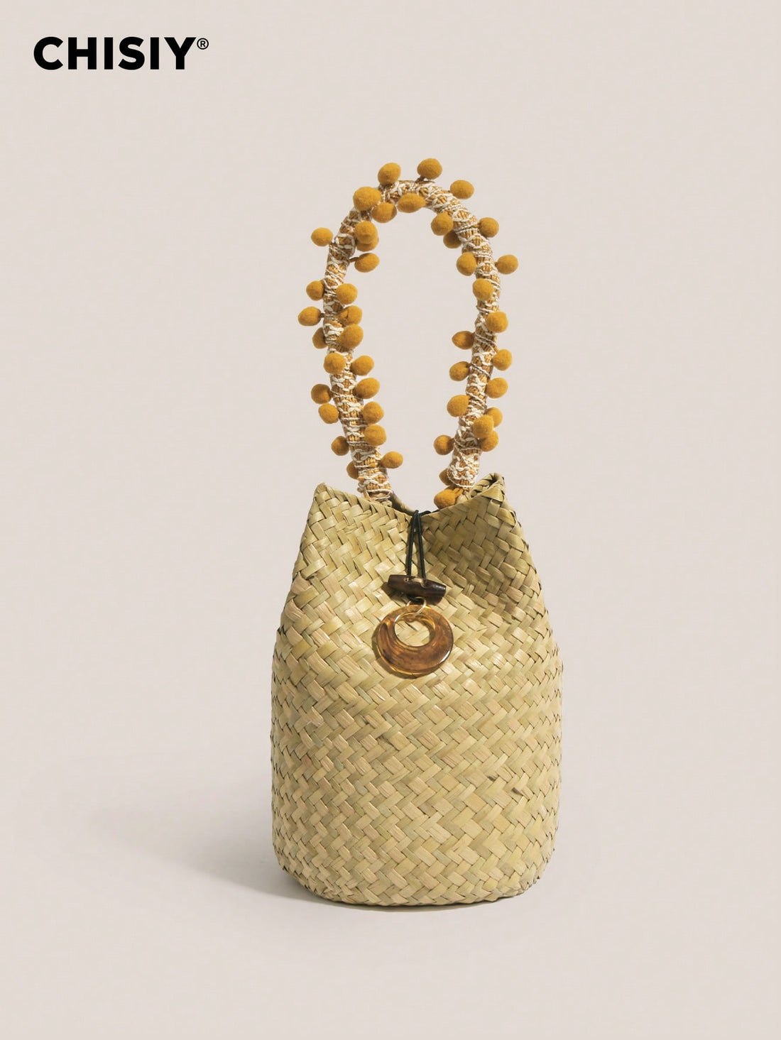 Original Handmade Bohemian Style Tassel Straw Bucket Bag, Tote Bag, French Vintage Woven Bag, Versatile For Daily Commute, Fashion Business Casual, Travel, Wedding, Outdoor, Vacation, Beach