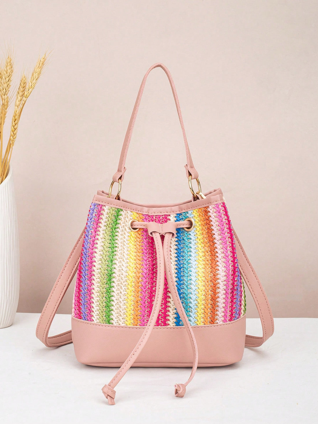 Large Capacity Women's Drawstring Bucket Tote Bag, Versatile Daily Beach Bag, Summer New Canvas Crossbody