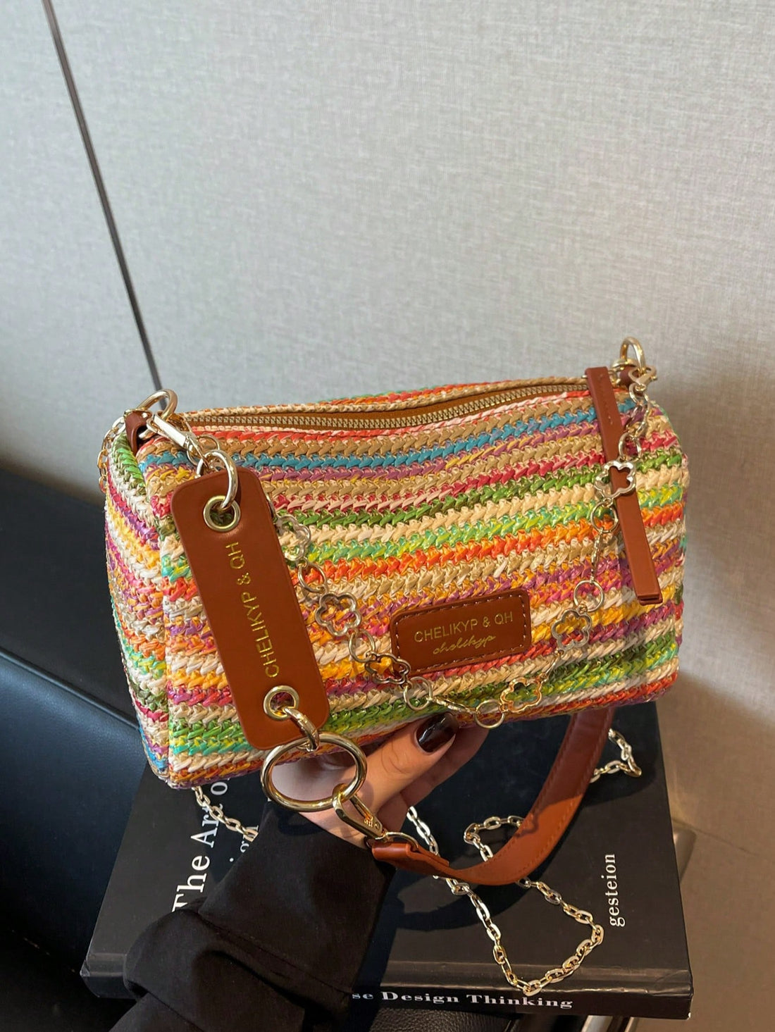 Details: ChainPattern Type: StripedColor: MulticolorOccasion: VacationStyle: CasualType: Straw BagBag Size: SmallClosure Type: ZipperStrap Type: AdjustableComposition:...
