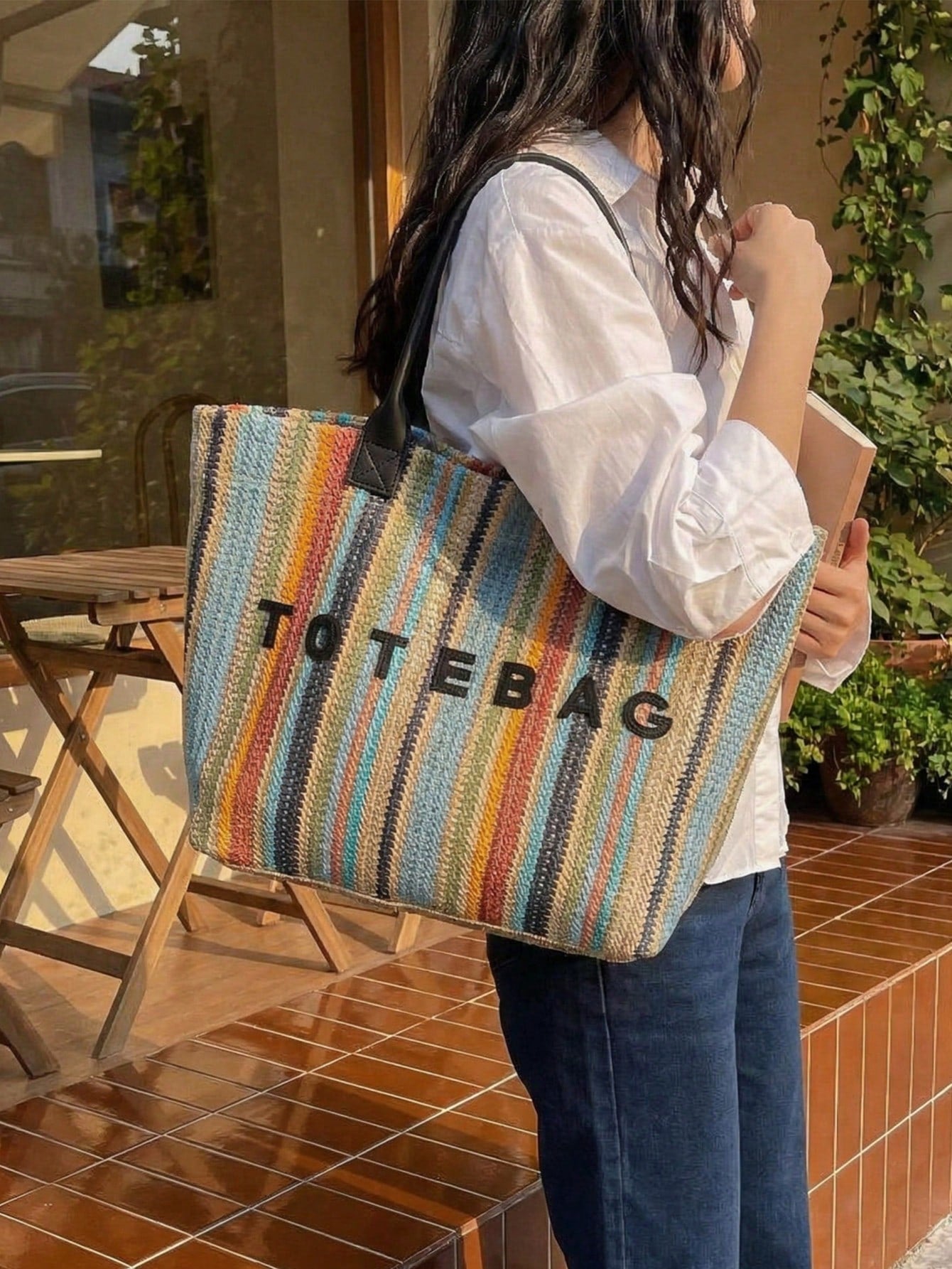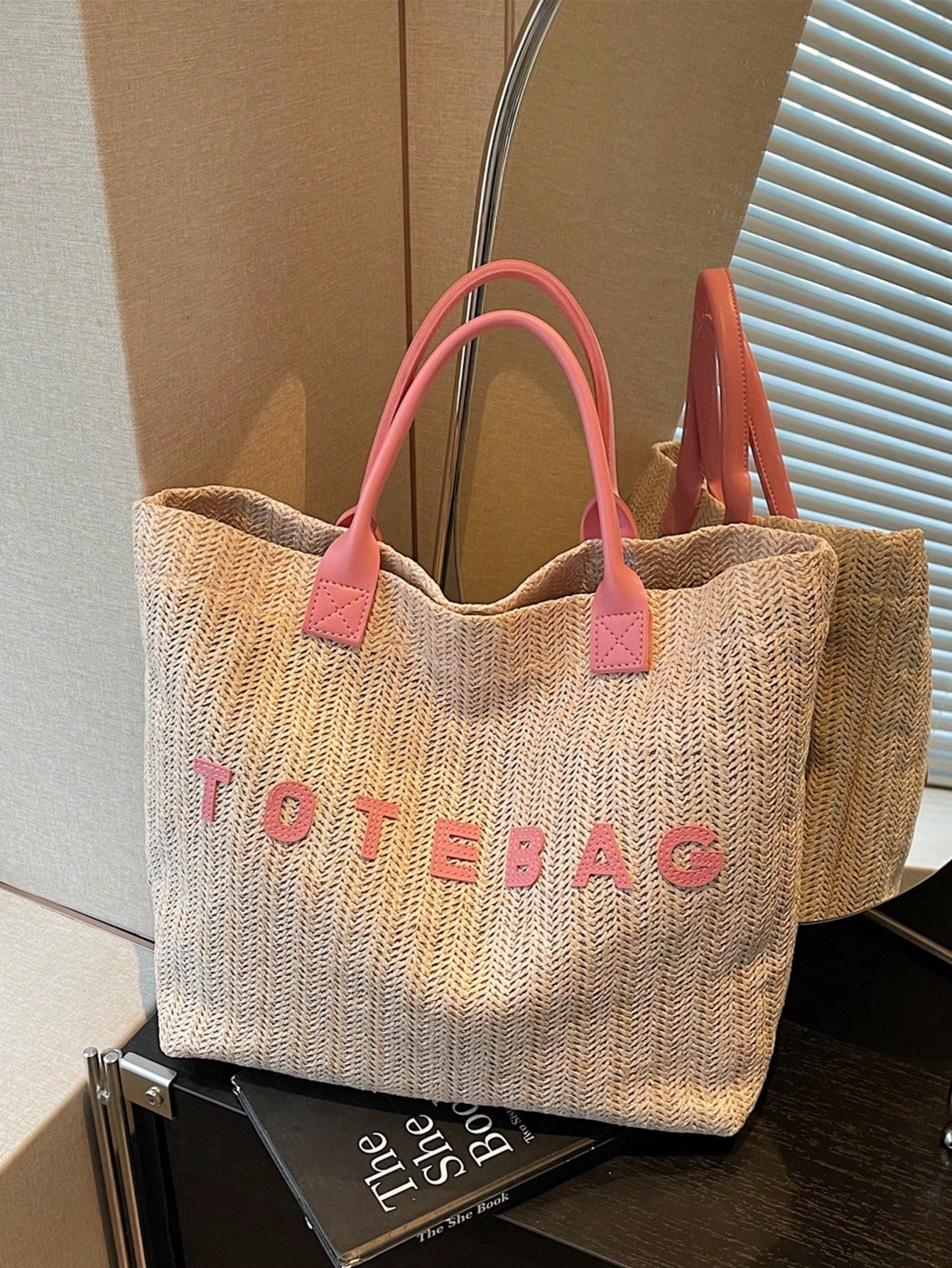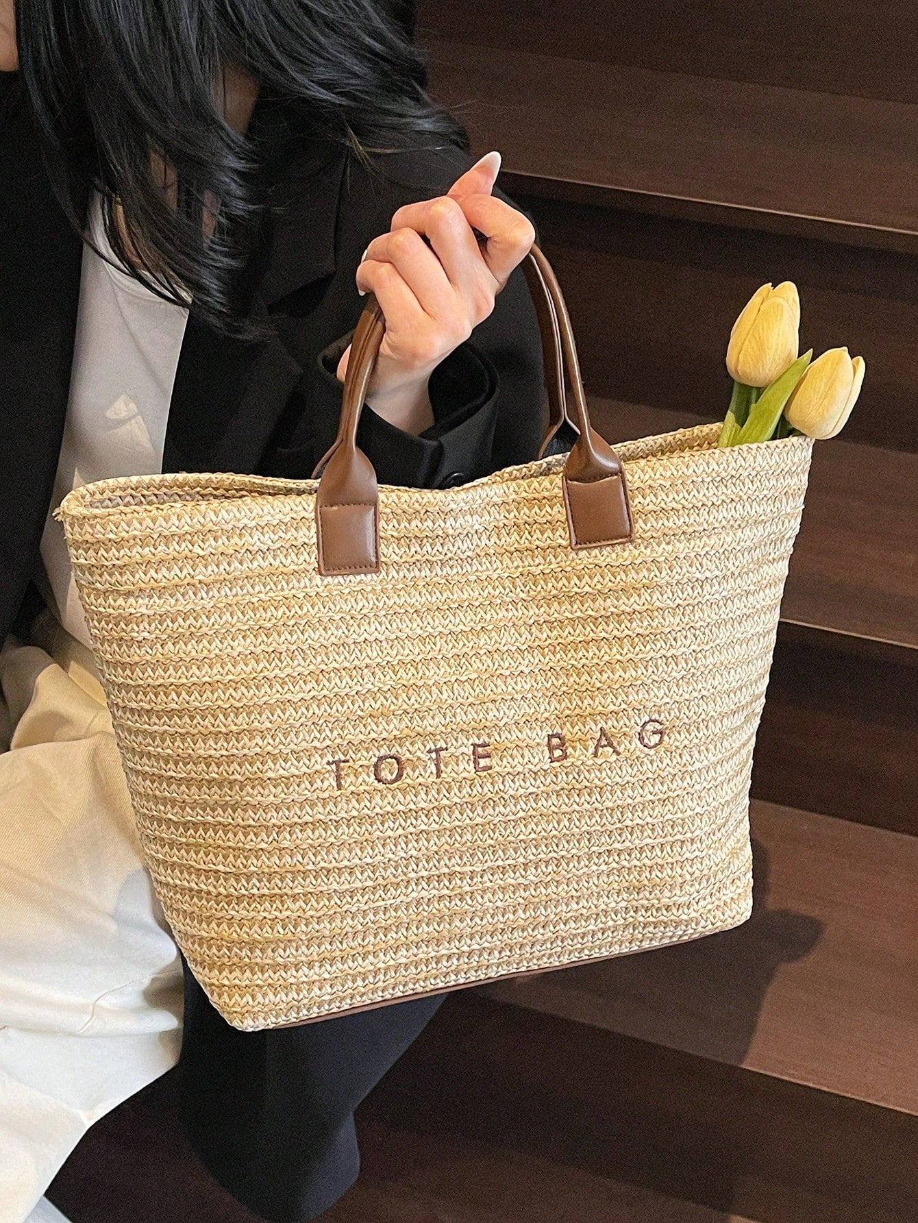 New Large Capacity Letter Decor Woven Straw Tote Bag, Multi-Functional Commute Casual Vacation Woven Straw Handbag Suitable For Commuting, Shopping, Beach Vacation, Office, Holidays
